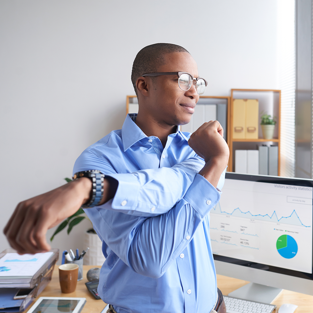 Sabendo disso, preparamos esta lista de 4 exercícios de alongamento que vão te ajudar a se sentir bem durante toda a sua jornada de trabalho. Além disso, com a ajuda na prática, você sentirá:
